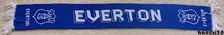 Az angliai tartózkodásomnak köszönhetően a helyi sálak megszaporodtak a gyűjteményemben az elmúlt időszakban. Ebben nincs is semmi meglepő, itt hatalmas respektje volt és van a labdarúgásnak (de más sportoknak is), így számtalan ereklyével gazdagodhat az, aki nem tér ki az útból. Én nem nagyon szoktam kerülgetni a sálakat, aki ismer tudja, hogy mindenevő vagyok, és számomra különlegesnek számítanak a gyakran tízesével befutó darabok. Ez a 8 Everton sál is méltó helyre került a kollekcióban, és azzal hogy ennyi került hozzám az elmúlt két évben, egy kicsit sikerült felzárkóznia a kékeknek a városi rivális mellé, mármint az én "kis" háziversenyemben.